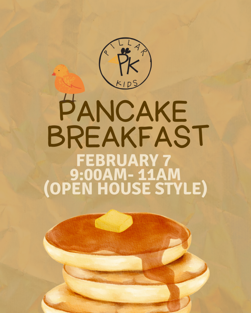 Pillar Kids Pancake Breakfast Saturday, February 7 | 9:00–11:00am, open house style Come enjoy a warm and yummy morning with Pillar Kids! We’ll have plenty of pancakes, coffee, and good company waiting for you. Whether you show up in your pajamas or your running gear fresh from the Holland Ice Snowmelt, we’ll have a stack of pancakes ready and waiting!
